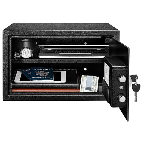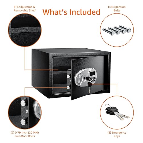 Amazon Basics Steel Security Safe and Lock Box with Electronic Keypad, Easy to Use, Secure Cash, Jewelry, Documents, Black, 1.2 Cubic Feet, 16.9-x-14.6-x-10.6-inches (WxDxH)