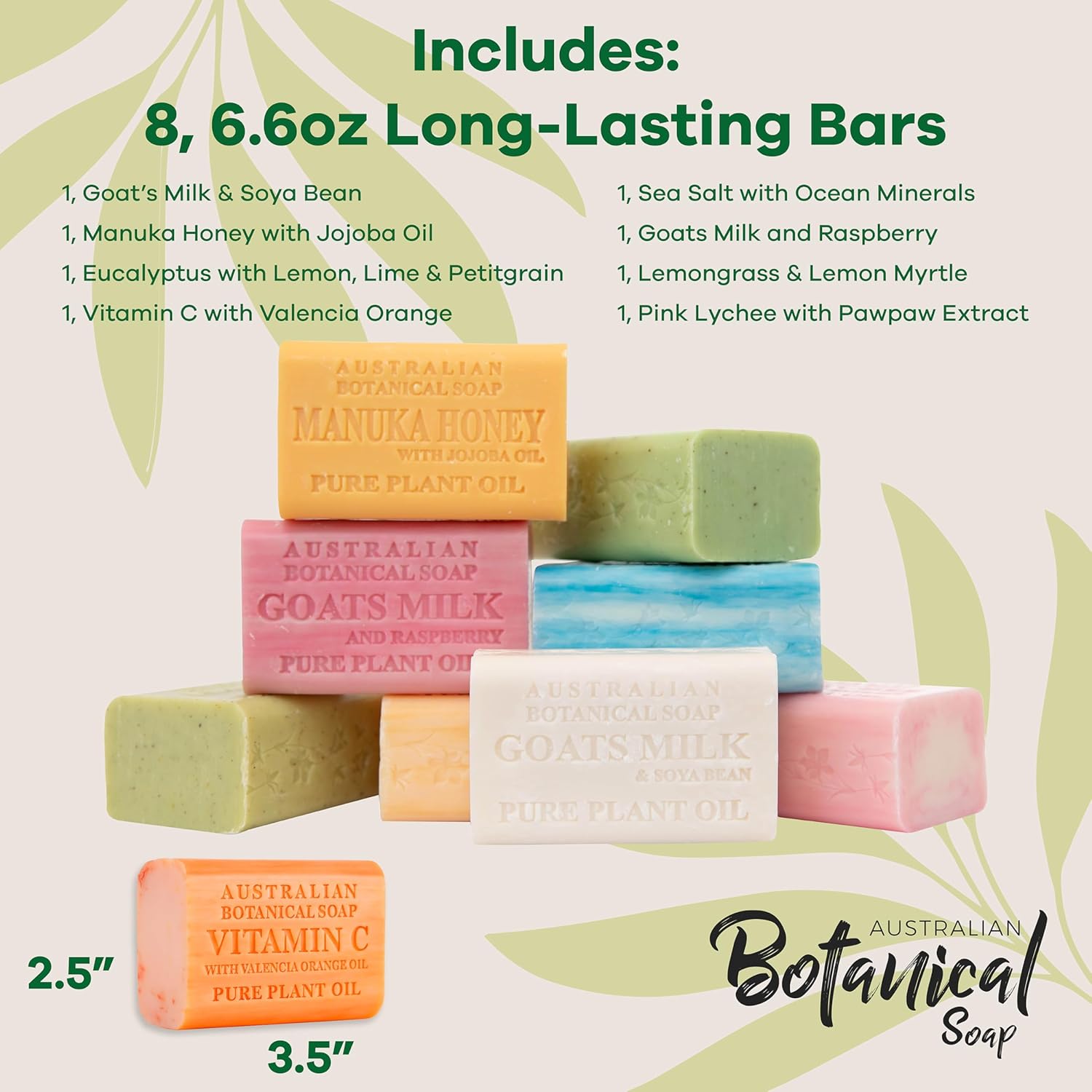 Australian Botanical Soap, 6.6 OZ, Triple Milled Bars with Pure Plant Oil, Natural Soap Base, Enriched with Organic Shea Butter, for Men, Women, All Skin Types, Variety Pack of 8, Packaging May Vary