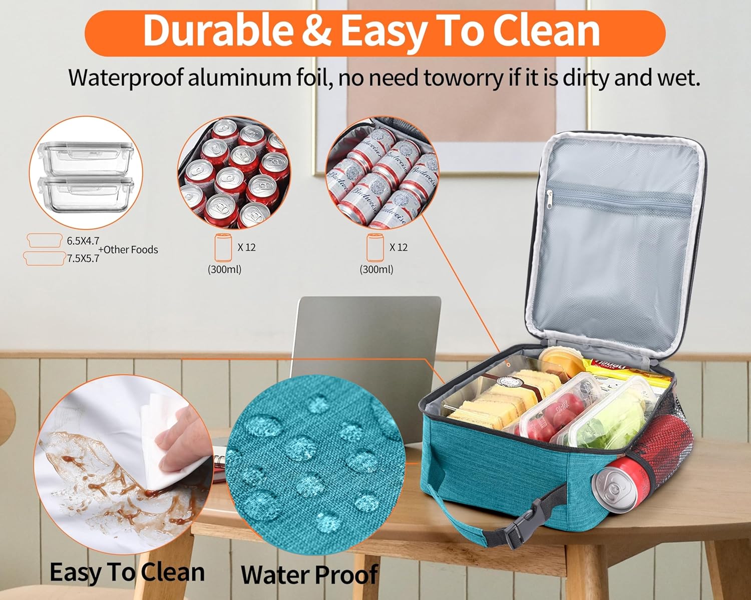 Lunch Box for Men - Reusable Lunch Bag Men Adult Women- Insulated Small LunchBox (Azure) Deals & Discounts | Santana Deals