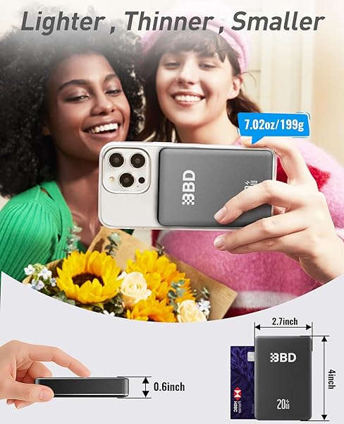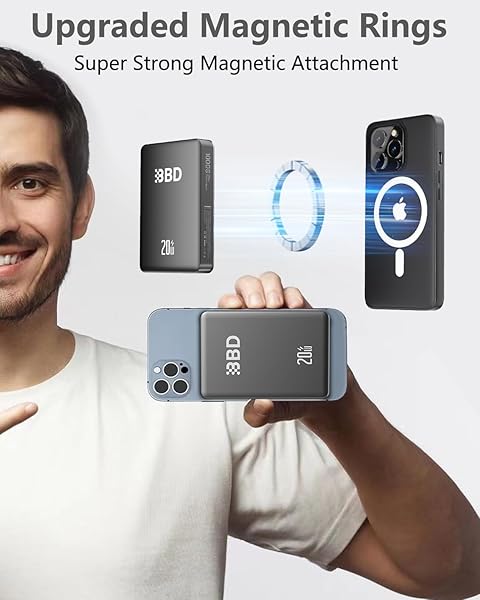 BBD Magsafe Portable Charger,10000mAh Magnetic Power Bank Fast Charging PD 20w with USB C Cable,Slim Magsafe Battery Pack Travel Essential,Wireless Power Bank for iphone 17/16/15/14/13/12 Series 1Pack