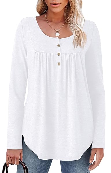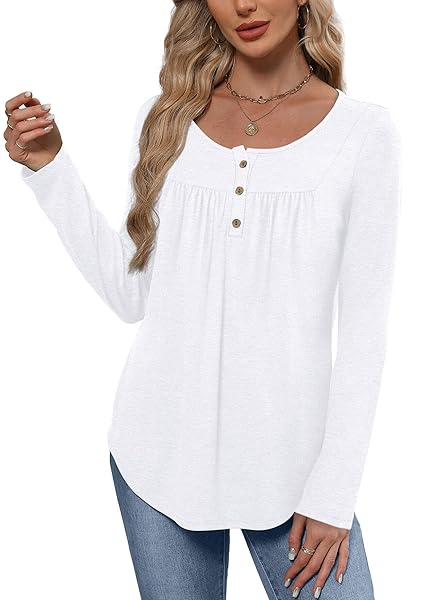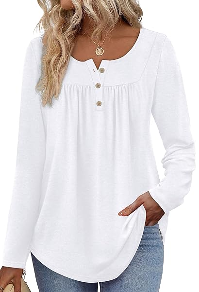 WIHOLL Long Sleeve Shirts for Women Fall Outfits 2025 Crewneck Casual Tunic Tops Trendy Blouses Fashion Clothing Deals & Discounts | Santana Deals Skip to content